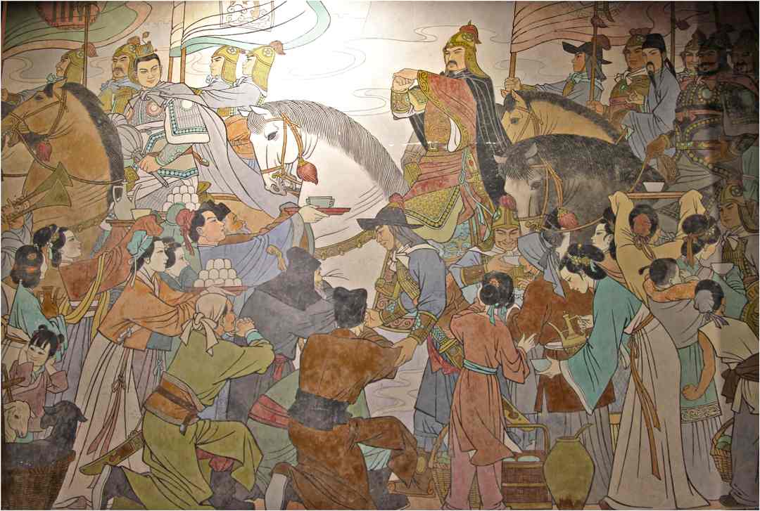. Тот факт, что данный сюжет удостоился двукратного изображения в Императорском Дворце ясно указывает на его значимость. Мы просмотрели фотографии всех фресок Длинного Коридора и, насколько можем судить, только сюжет с Юэ Фэем повторен здесь два раза. Его явно выделяли.