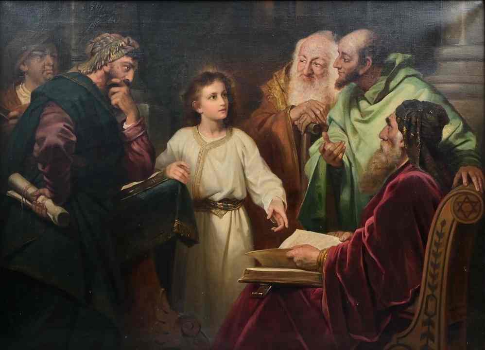 Евангелие от Луки сообщает о юном Христе следующее. Это - известный сюжет. "Каждый год родители Его ходили в Иерусалим на праздник Пасхи. И когда Он был двенадцати лет, пришли они также по обычаю в Иерусалим на праздник. Когда же, по окончании дней праздника, возвращались, остался Отрок Иисус в Иерусалиме; и не заметили того Иосиф и Матерь Его, но думали, что Он идёт с другими. Пройдя же дневной путь, стали искать Его между родственниками и знакомыми и, не найдя Его, возвратились в Иерусалим, ища Его. Через три дня нашли Его в храме, сидящего посреди учителей, слушающего их и спрашивающего их; ВСЕ СЛУШАВШИЕ ЕГО ДИВИЛИСЬ РАЗУМУ И ОТВЕТАМ ЕГО" (Лука 2:41-51).