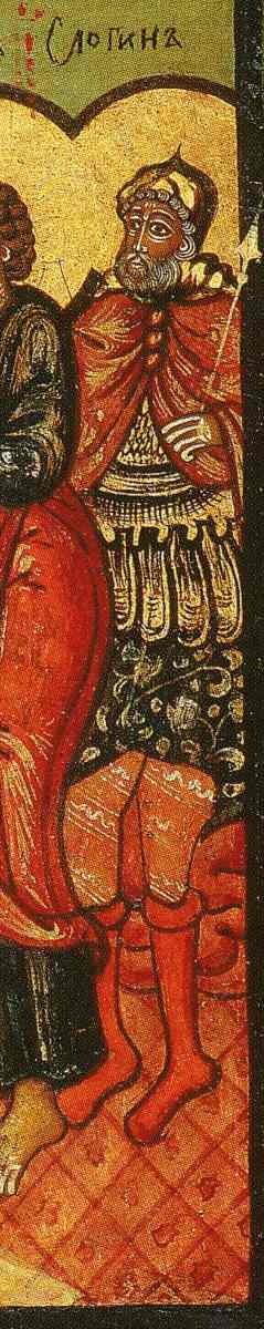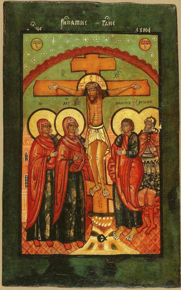 На многих иконах, изображающих распятие, рядом с Христом стоит "сотник Логин", рис.1.75