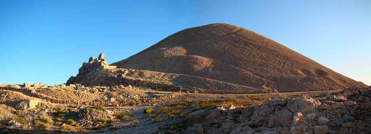 Конечно, в принципе "раскопать" курган можно. Но для этого нужно совершить работу, практически такую же, как и при его создании. Попросту говоря, можно снести курган, например, современными бульдозерами и экскаваторами. Но он высится до сих пор. Судя по всему, никто не пытался снести эту чудовищную гору щебня. Масштаб работ по сооружению кургана на горе Немврода поражает. Мы цитируем. <<Объем кургана "оценивается примерно в 290 ТЫСЯЧ КУБИЧЕСКИХ МЕТРОВ КАМНЕЙ, общим весом около 600 ТЫСЯЧ ТОНН (повторим - шестьсот тысяч тонн - Авт.)>> [1069:1a], с.6-7. Для того, чтобы снести эти шестьсот тысяч тонн, нужны экстраординарные усилия, даже при современной технике.