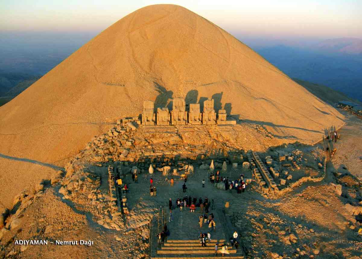 В книге "Курган Христа и Богородицы" мы высказали и обосновали гипотезу, что Христос и Богородица были окончательно захоронены на вершине горы Немврода в огромном кургане, сделанном из щебня. Эта гробница была возведена солдатами Ордынской Империи в XIII веке. По приказу хана-императора вершина горы Немврода была срезана, перемолота в щебень, и из него был насыпан гигантский курган высотой около 70 метров. Внутри были помещены саркофаги. На рис.1.100