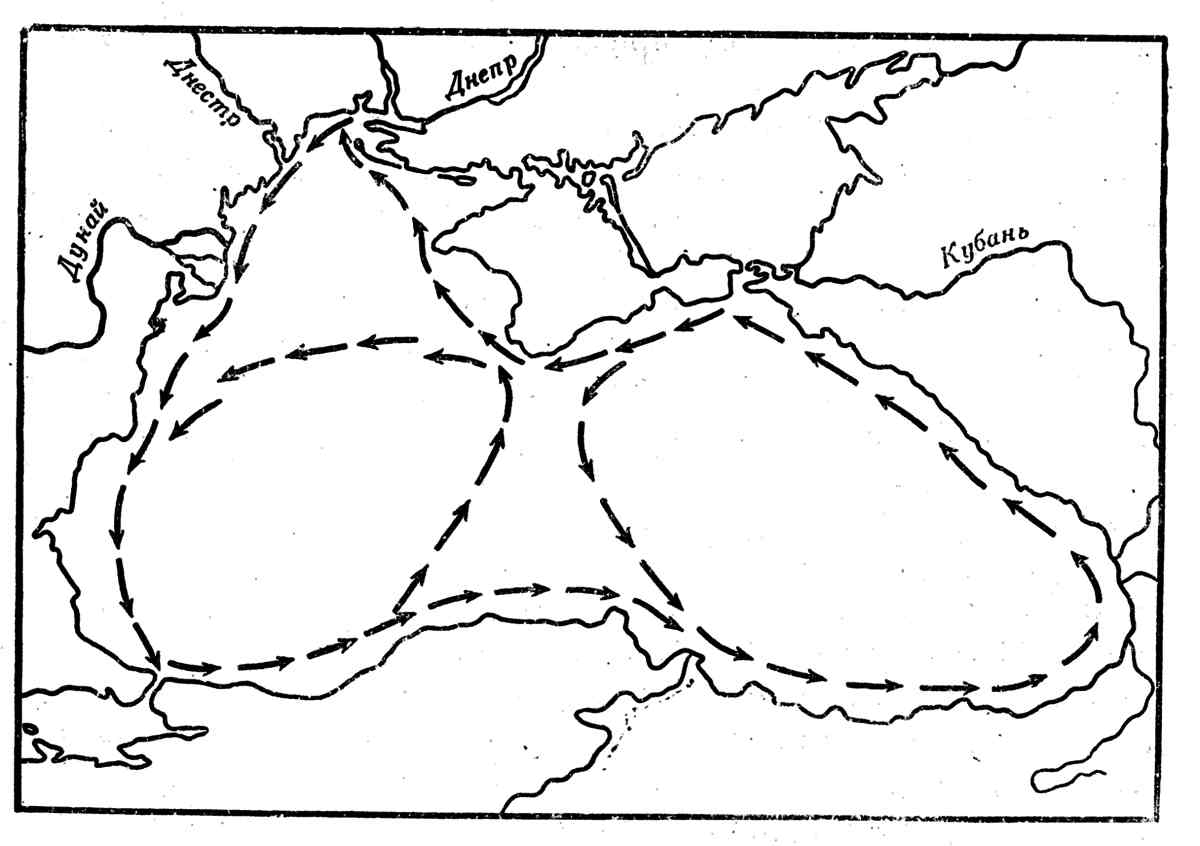 . Оказывается, течения в Черном море устроены так, см. рис.2.3
