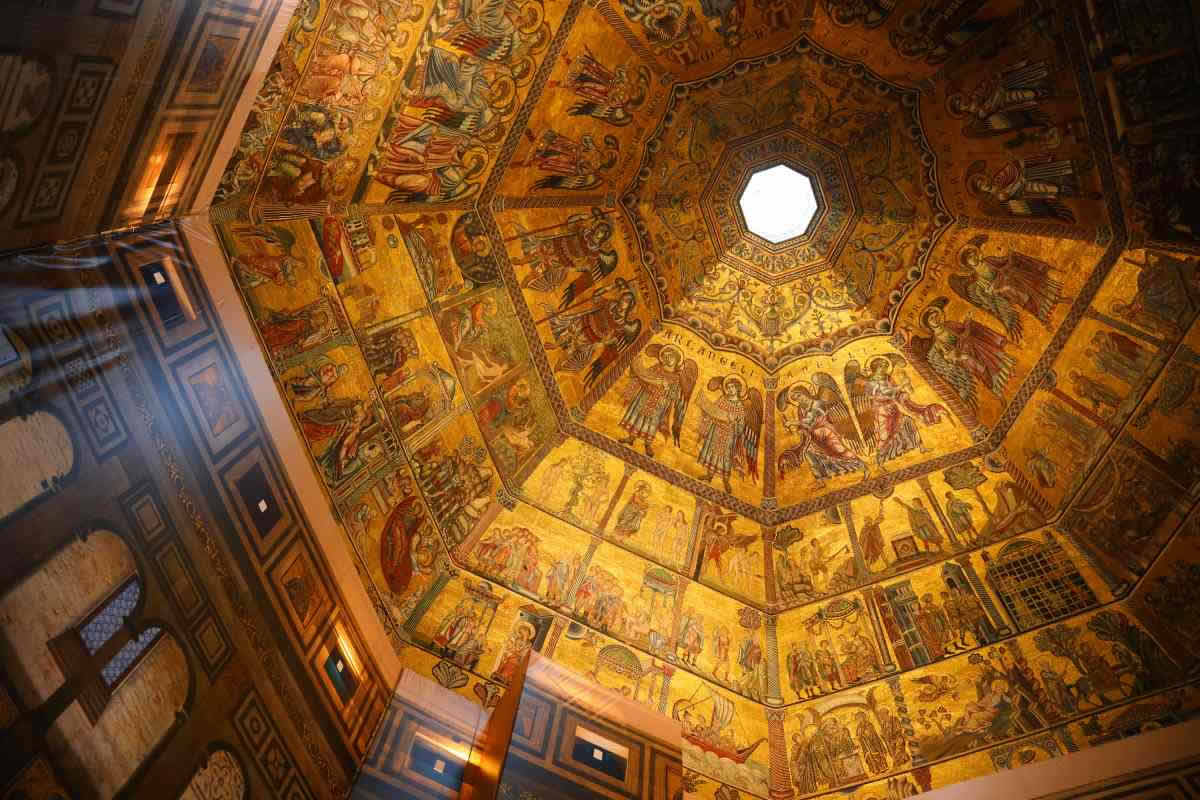 Баптистерий показан в центре, слева от него расположен Флорентийский Собор (Дом). На куполе Баптистерия находится гигантская фреска-мозаика, изображающая множество сюжетов из Ветхого и Нового Заветов, рис.2.15