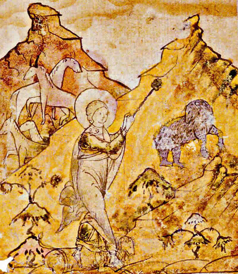 Мы видим, что средневековые персидские авторы еще помнили многое из общей ордынской истории, в том числе, русский сюжет О РАНЕНИИ, НАНЕСЕННОМ КОНЮ ГЕОРГИЯ не то волком, не то змеем, не то медведем. И решили, что ранение было настолько серьезным, что конь умер. Усилили эмоции, придали всей истории более драматичный характер. Правда, русские источники о гибели коня Георгия не сообщают.